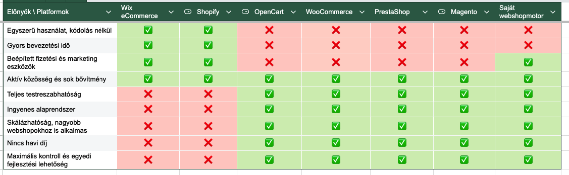 Konklúzióként a megfelelő webshop platform kiválasztása nagyban múlik az üzleti igényeiden, technikai tudásodon és a rendelkezésedre álló költségkereten.